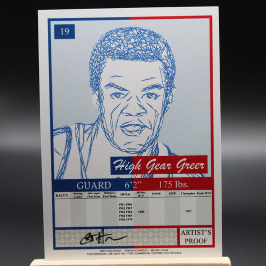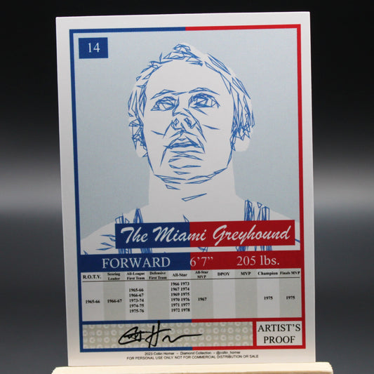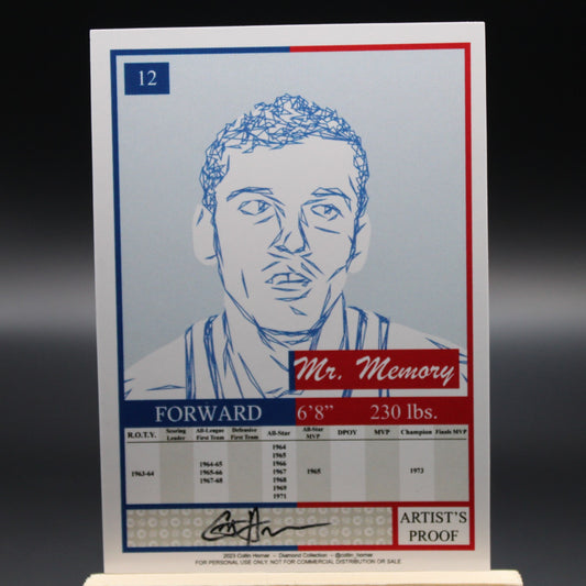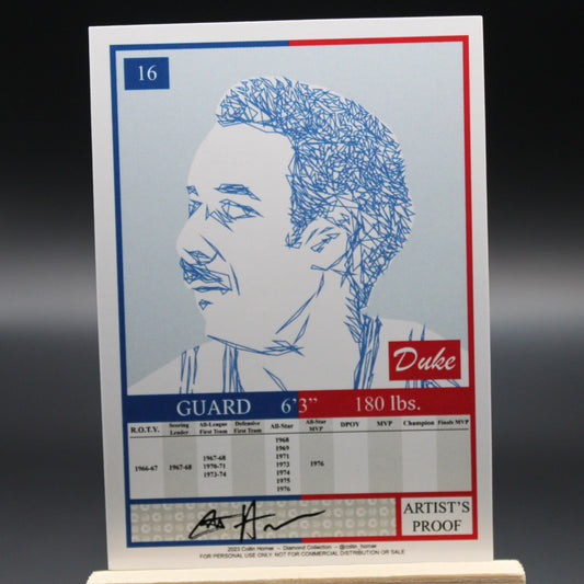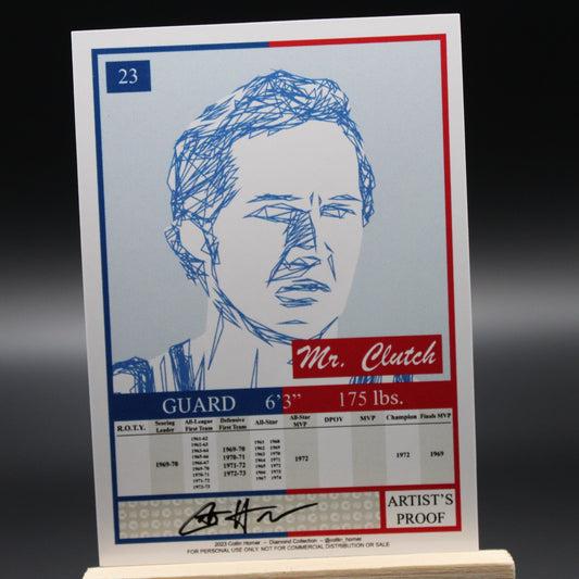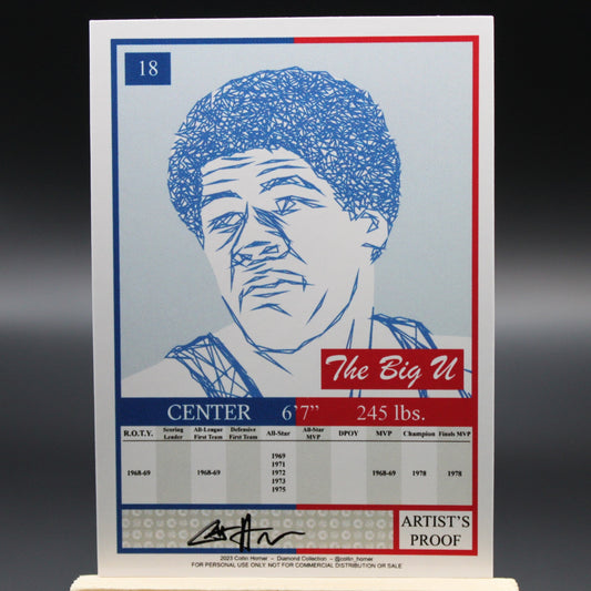 18 Card series featuring original illustrated portraits of the best players in the game. Bold color blocking and holographic finish makes these cards stand out. Each design is limited to five numbered prints.