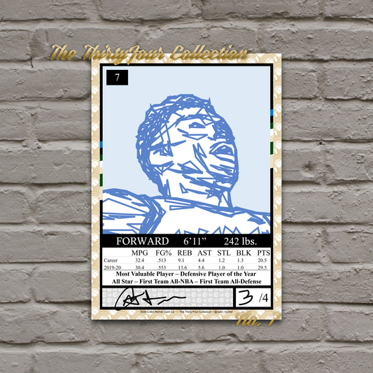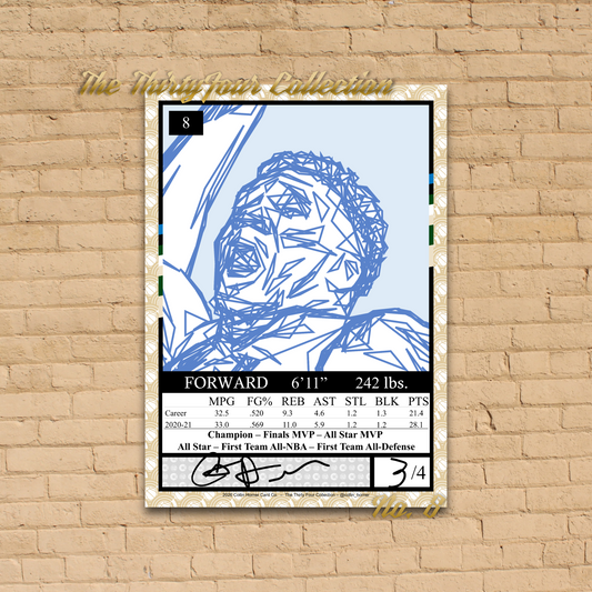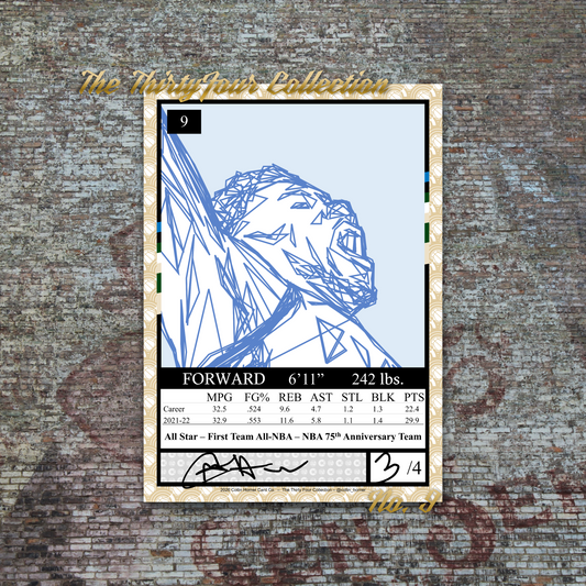 27-card set featuring bold illustrations of iconic uniforms over silver backdrop with unique mesh patterns. Each card is limited to nine numbered prints signed by the creator.