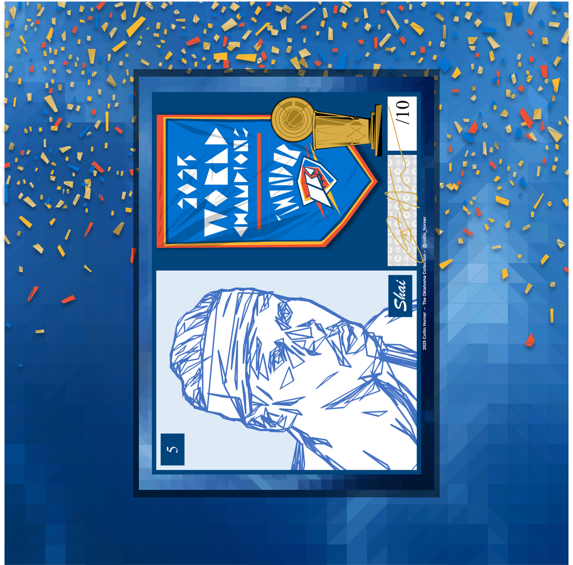 Card No. 5 in a ten-card set celebrating the 2025 Champs. Featuring a dynamic design and holographic finish, cards 1-9 are designed to be displayed together, forming a banner graphic when arranged in order in either a binder or frame.