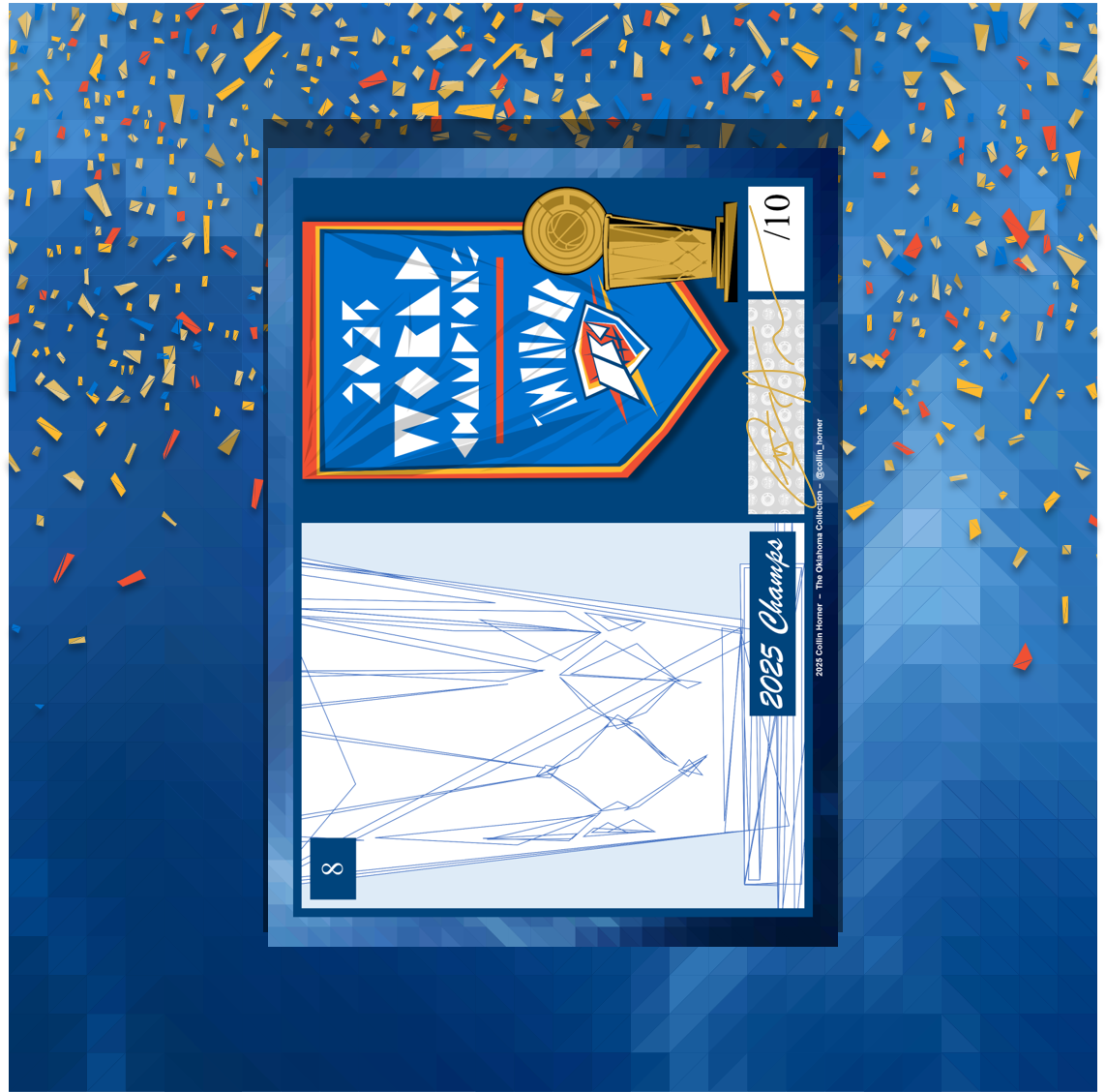 Card No. 8 in a ten-card set celebrating the 2025 Champs. Featuring a dynamic design and holographic finish, cards 1-9 are designed to be displayed together, forming a banner graphic when arranged in order in either a binder or frame.