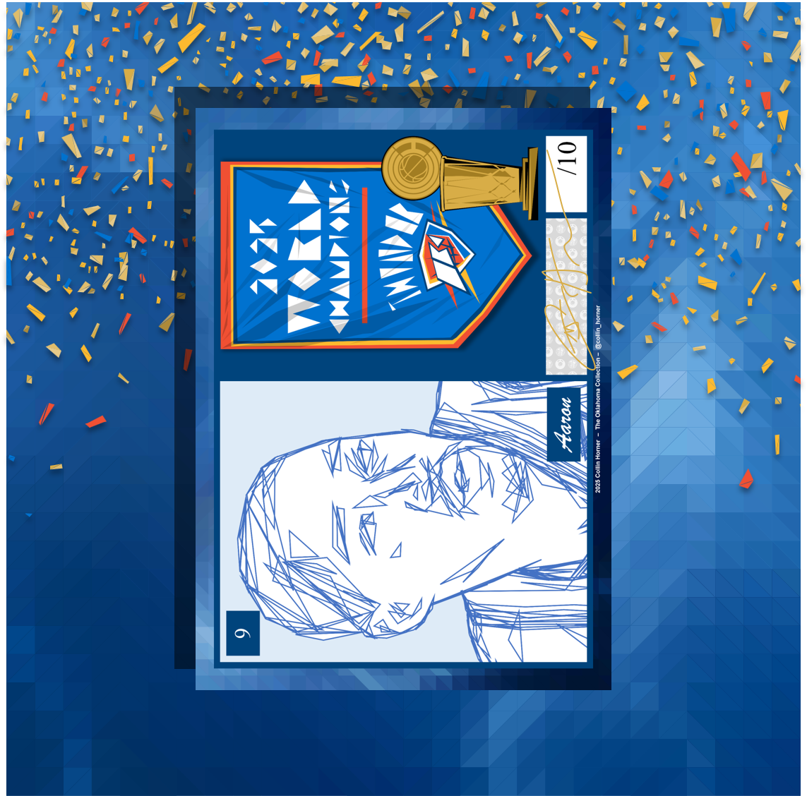 Card No. 9 in a ten-card set celebrating the 2025 Champs. Featuring a dynamic design and holographic finish, cards 1-9 are designed to be displayed together, forming a banner graphic when arranged in order in either a binder or frame.
